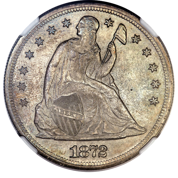 The 1872 Seated Liberty dollar claims a series-high mintage of 1,105,500 pieces, but the issue is more difficult to locate than that large production total would indicate. The coins were all paid out to depositors who brought silver bullion to the Mint, but a number of coins surfaced in the Treasury releases of the early 1960s. Rumors of a full bag of Uncirculated 1872 silver dollars being released in the 1962-1964 period are unconfirmed, but a significant number of coins did come on the market from the Treasury hoard during that era. It seems likely that some of the original depositors returned their holdings to the Treasury Department after the intrinsic value of a silver dollar fell below its face value in 1873, rather than spending them in commerce. However, the consignor's family acquired the present piece long before the Treasury hoard was released.