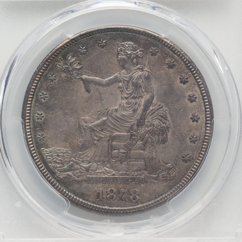 The United States Congress authorized the U.S. Mint to create a Trade Dollar to improve trade with the Orient, China in particular. It was legal tender all around the world, but especially in Asia and was minted from 1873 to 1885.