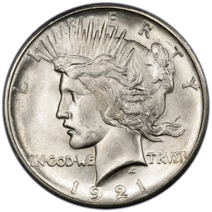 The first of the Peace Dollars were struck and issued in 1921 from designs by Anthony de Francisci, winner of a competition held by the Commission of Fine Arts. De Francisci beat out seven other artists, some of whose names will be familiar to numismatists (Victor D. Brenner, John Flanagan, Hermon MacNeil, Adolph Weinman, and other coin designers). De Francisci presented three models: an obverse similar to the adopted design but with a date below the bust in Roman numerals; a reverse almost exactly as adopted but without the word "PEACE"; and a reverse reminiscent of the reverse of the Walking Liberty Half Dollar, with an aggressive eagle bending a sword in its beak. A revised model of the first reverse showed the eagle with a broken sword in its talons, meant to represent the destruction of implements of war. However, this symbol met with derision from those who interpreted it as a symbol of defeat or disgrace. The sword was removed from the design (by hand from the hubs!), other minor modifications were made to the obverse and reverse, and the first Peace Dollars were struck on December 28, 1921.