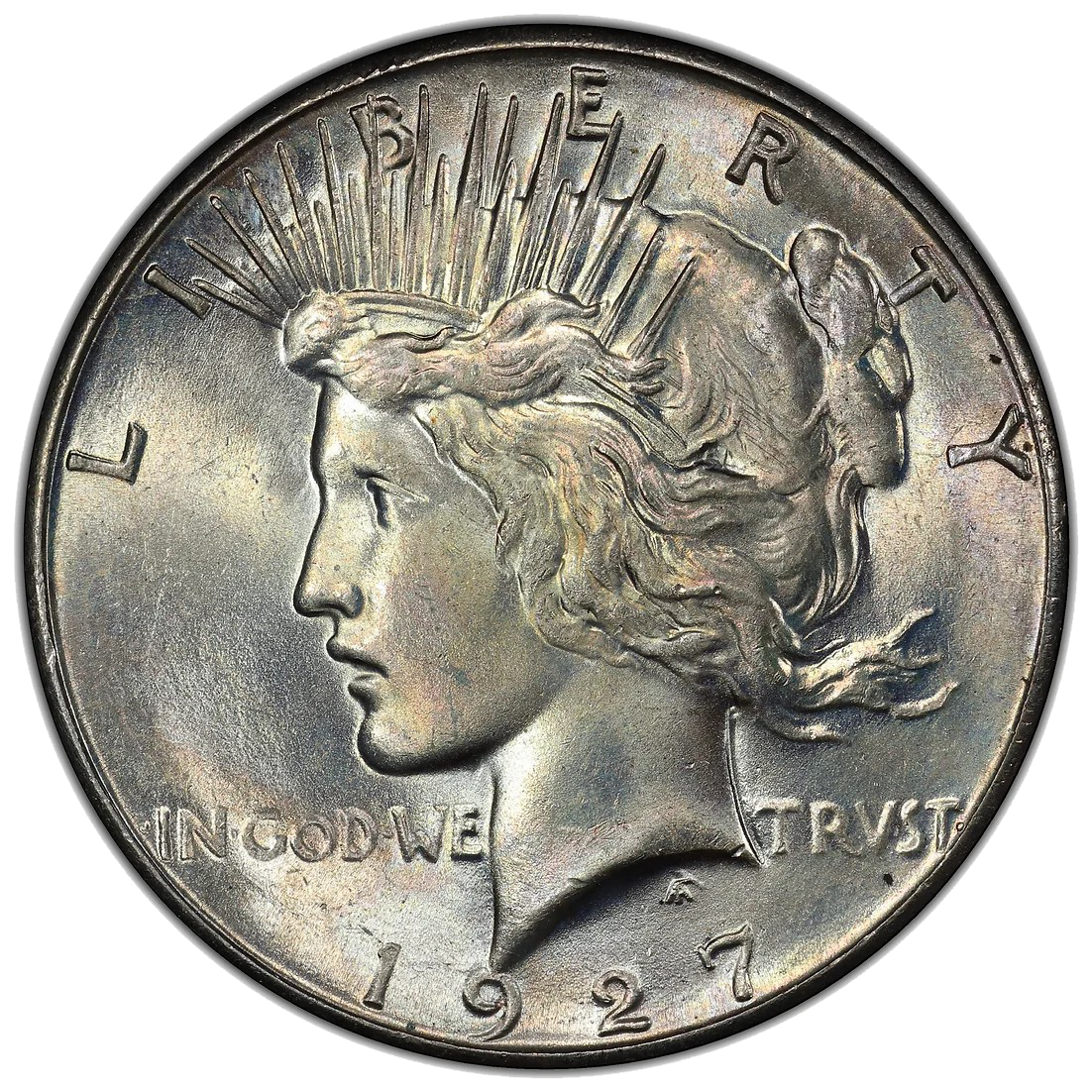 The 1927-S Peace Dollar graded is one of the more sought after coins in the Peace dollar series. There were only 866,000 coins minted, making it one of the lowest mintage of all time. Many of these coins are readily available in lower grades, and are very rare in higher grades, especially a higher grade 1927-S Peace Dollar that is sharply struck.