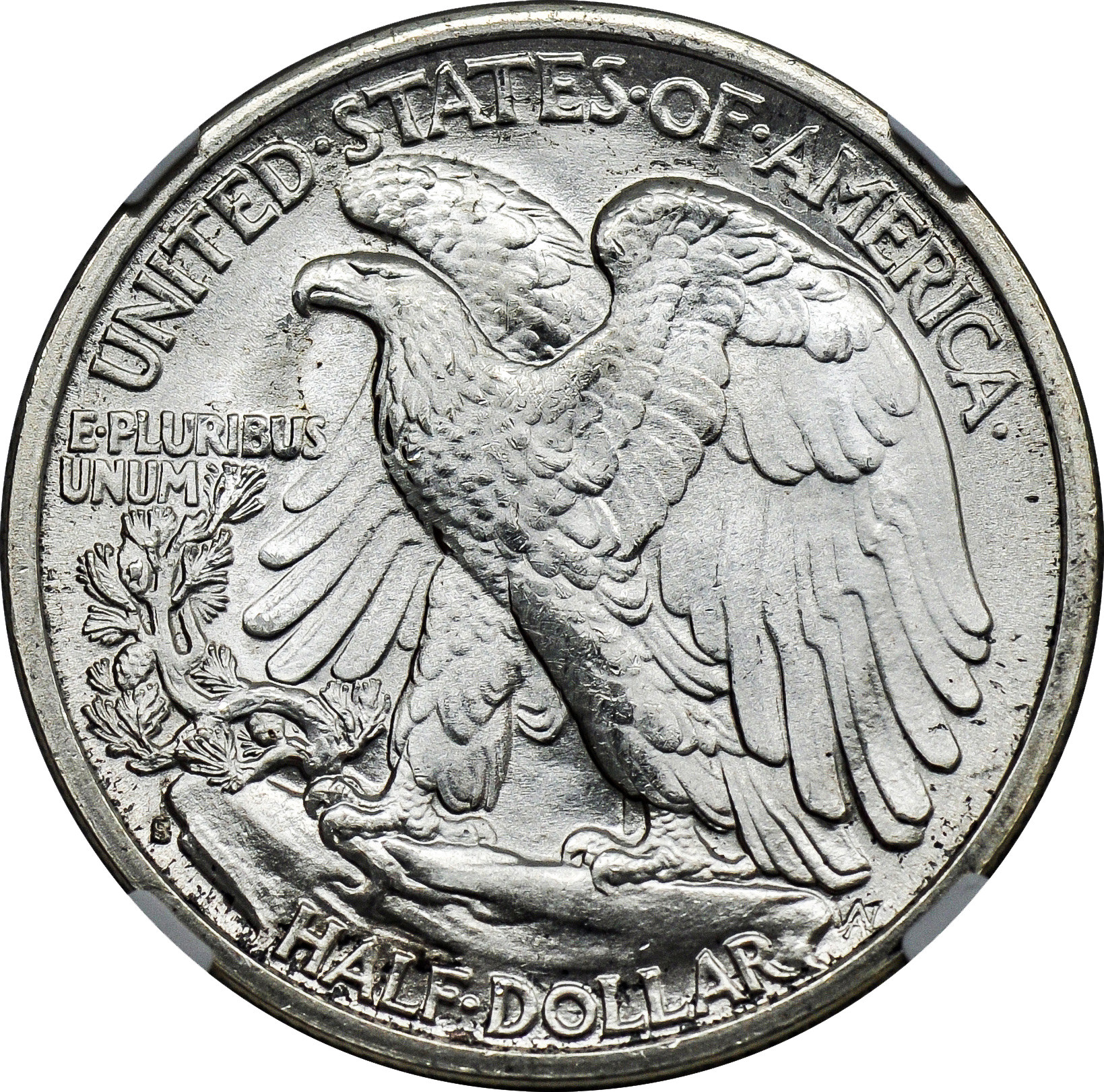 - Reverse: An American Eagle perched on a branch with the words E PLURIBUS UNUM, HALF DOLLAR and UNITES STATES OF AMERICA
