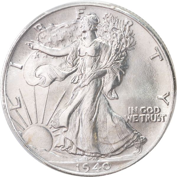 The 1940 Liberty Walking half dollars were coined over 65 years ago at the main U.S. Mint in Philadelphia, the birthplace of U.S. coinage, where coin production dates back to 1793! Liberty Walking halves feature an attractive and popular depiction of Liberty striding toward the rising sun, her right arm outstretched in a bestowal of the spirit of freedom. The eagle on the reverse is equally as impressive and artistic.